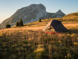 Sunset bivouac in the french Vercors National Park