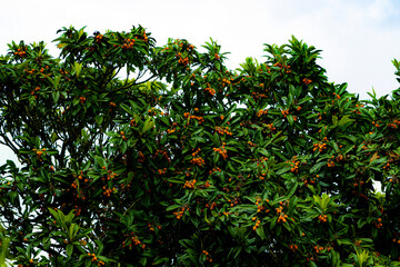 Fruit of loquat - Eriobotrya japonica - has become in Fukuoka city, JAPAN.