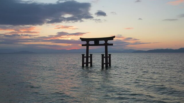 Japanese torii gate at Lake Biwa, Shiga Prefecture, Japan