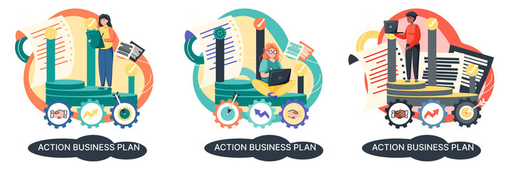 Action business plan, development strategies, foreseeing market risks. Company success secret, idea growing business achieve target metaphor, study production and sales market. Strategic biz planning