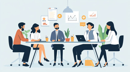 Businesswoman clerk teamwork people in office, chief entrepreneur company meeting flat vector illustration, isolated on white.