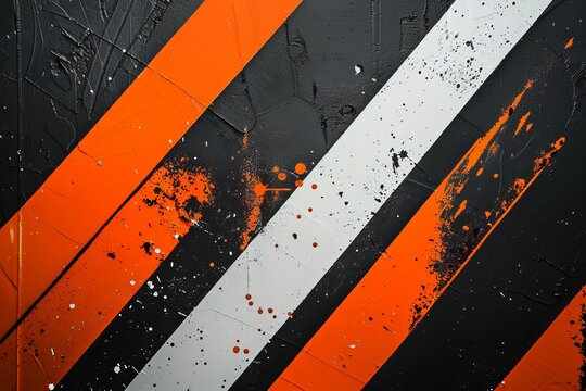Stylish white and orange elements on a vibrant black background with trendy stripes