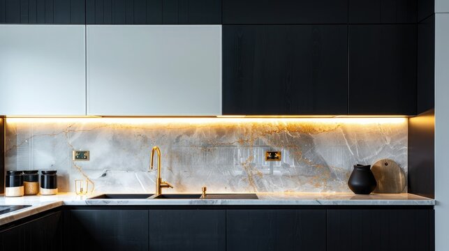 A chic modern kitchen that seamlessly blends bold design choices with functionality. Generative AI