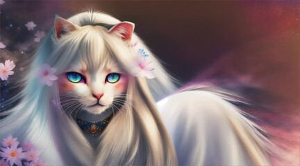 ピンクの花の化け猫|pink flower monster cat Generative AI