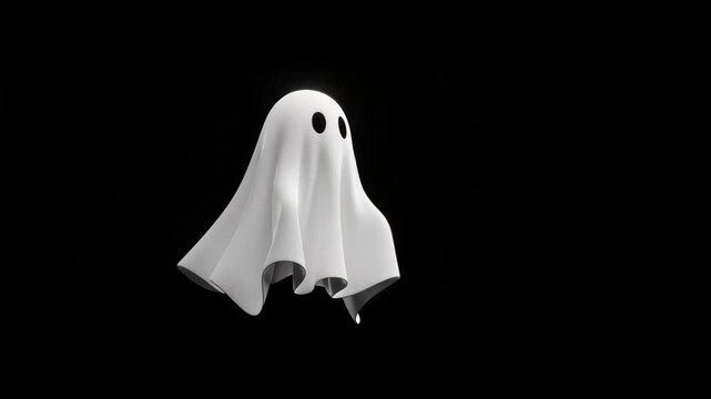 Soft White Fluffy Spherical Creature with Black Eyes, Minimalist 3D Furry Toy Illustration