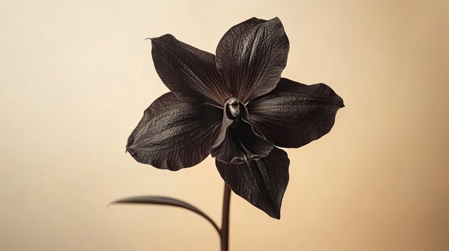A striking black flower against a soft background, showcasing unique beauty and elegance.