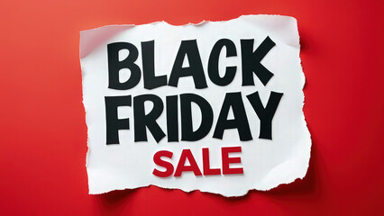 Bold BLACK FRIDAY SALE text on torn white paper, set against a vibrant red background, with a modern graphic design style