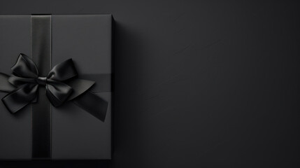 Gift box with black bow on black background