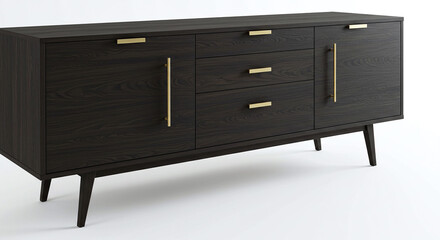 Modern Dark Wood Buffet Sideboard Cabinet Gold Handles