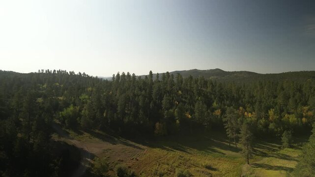 Aerial reveal meadows in Black hills national Forest in South Dakota in summer