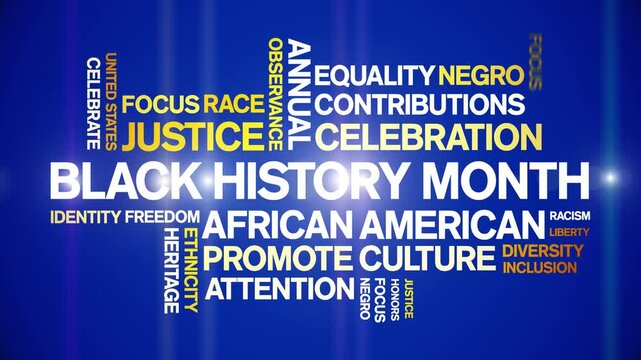 Black History Month animated word cloud;text design animation tag kinetic typography seamless loop.