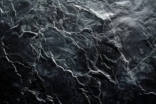 Textured black ice surface details - Close-up view of a textured, glossy black surface resembling fractured ice or a rugged stone texture, ideal for background uses