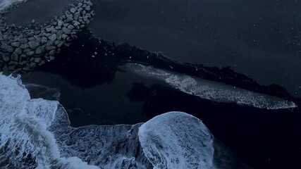 Aerial view of beautiful black sand beach in Lanzarote, Canary Island