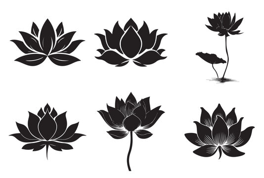 Lotus flower logo. Set of black lotus logo. Vector illustrations isolated on white background. Can be used as icon, sign or symbol - for yoga and meditation, for spa salon. Lotus silhouette.