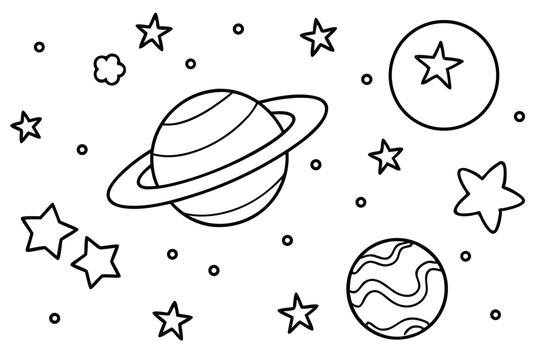 Set of differents hibiskus on white background. Watercolor, line art, outline illustration.