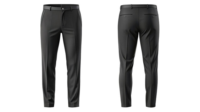Realistic Black Dress Pants Mockup - Front and Back Views isolated PNG on transparent background