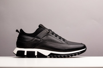 Single new unbranded black shoe, sneakers or trainers isolated on white background with clipping path