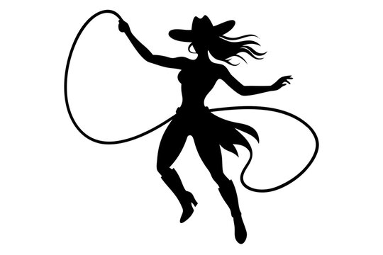 Young sexy woman standing with a whip. flat vector silhouette