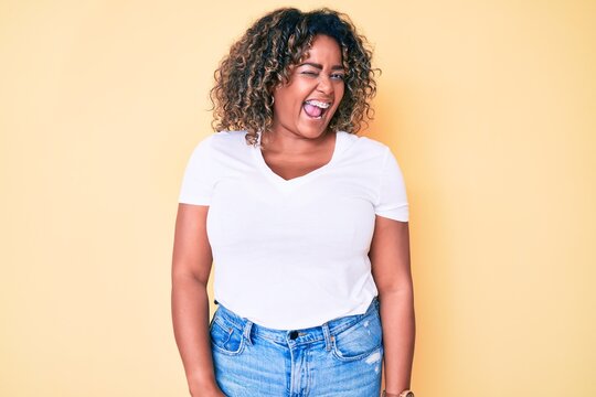 Young african american plus size woman wearing casual white tshirt winking looking at the camera with sexy expression, cheerful and happy face.
