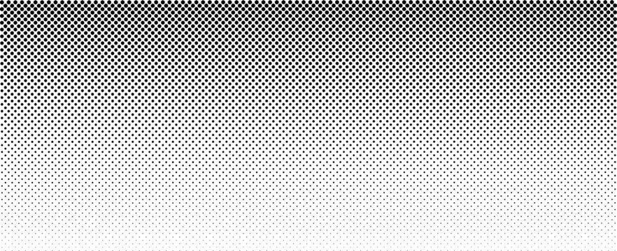 Halftone vector background. Monochrome halftone pattern. Abstract geometric dots background. Pop Art comic gradient black white texture. Design for presentation banner, poster, flyer, business card.