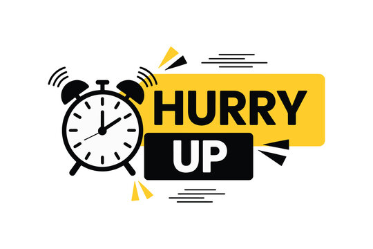 Alarm clock with hurry up text and yellow and black design