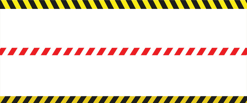 Warning yellow black red diagonal stripes line. Safety stripe warning caution hazard danger road vector sign symbol. Long danger ribbon. Vector illustration on white background. EPS file 112.