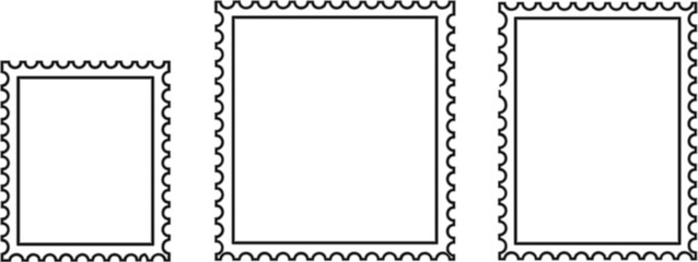 Postage stamp frame set with decorative perforated borders in different sizes, clean outline style for labels, prints, and design templates