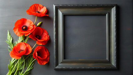 Poppy pin for Remembrance Day. Poppy flower on black background.