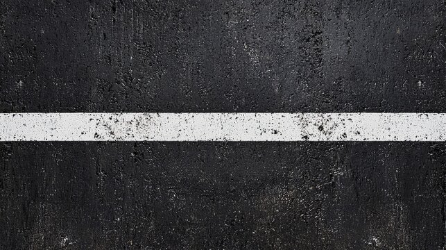 A close-up view of a textured asphalt surface with a prominent white line, commonly seen on roads for lane marking.