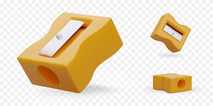 Yellow pencil sharpener. School and office stationery. Set of colored vector illustrations. Icons for web design. Back to school. Accessory for sharpening pencils