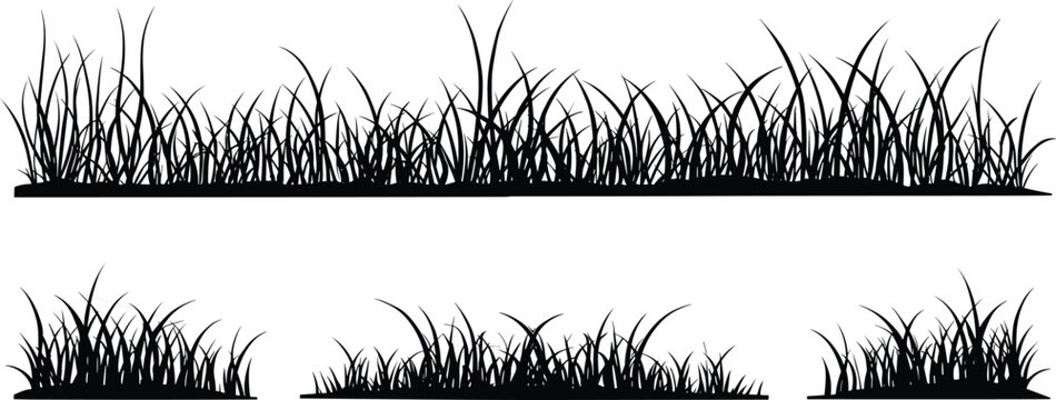 Black silhouette grass patches and meadow border, natural vegetation blades design, decorative landscape elements isolated vector illustration for artwork