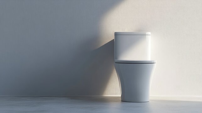 Modern Minimalist Bathroom Design Featuring Contemporary White Toilet Against Textured Wall in Soft Natural Light