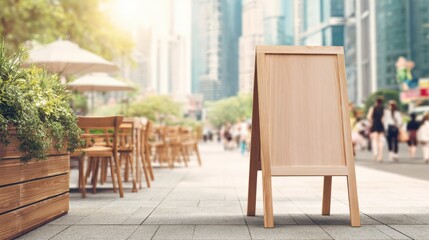 Blank Wooden Sandwich Board on City Sidewalk, Perfect for Restaurant Menu Mockup and Outdoor Advertising