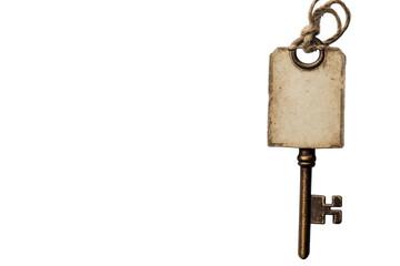 Antique skeleton key with blank tag rustic charm white background simple design vintage style