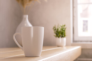 Template ceramic clean white mug with a matte effect, without the bright glare.