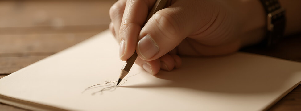 Hand sketching design with pencil on blank paper surface