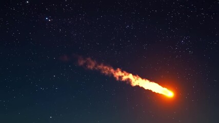 A fiery meteor streaks across the night sky, leaving a glowing trail against a backdrop of countless stars. This captivating scene captures the dynamic energy and spectacle of a meteor blazing through
