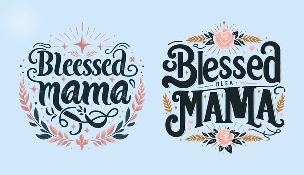Blessed mama calligraphy hand lettering isolated on white. Inscriptional quote typography poster. Mother s day greeting card. Easy to edit vector template for, banner, t-shirt, mug, label, flyer, etc.