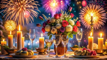 Vibrant new year celebration with sparkling fireworks