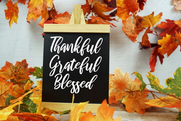 Thankful, grateful and blessed inspirational words  with maple leaf decoration