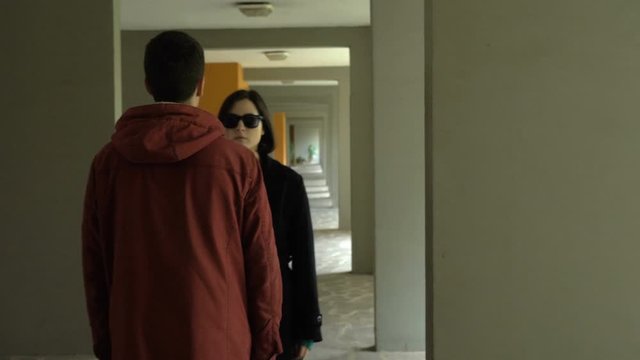 Close up profile of a couple with eyes closed sharing a tender moment during a first kiss on a blind date intimate setting love and connection