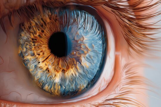 Colorful waves flow through an abstract eye in a serene and imaginative setting. Blindness Awareness Month