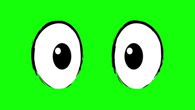Simple cartoon blinking eyes close-up. green screen background.
