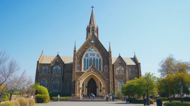 Church, Bloemfontein, South Africa, sunny day, tourists entering, travel tourism
