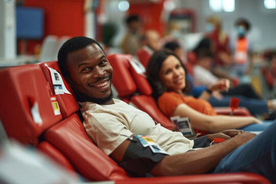 Donor Concept. Male, Female Doctors Characters in Medical Uniform. Blood Donation Laboratory, Healthcare, Charity, World Donor Day Poster, Banner, Flyer, Brochure. Cartoon Flat Vector Illustration