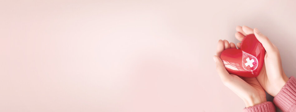 Hand hold red heart shape with blood danation symbolic , Generative ai