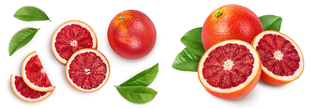 red blood orange slice, isolated on white background, clipping path, full depth of field