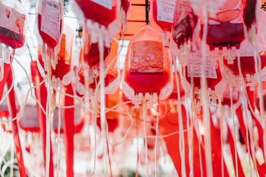 Half empty blood bags, close angle