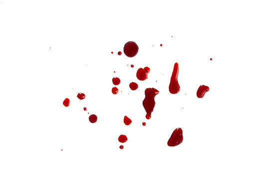 Blood, red sauce or red paint splashes isolated on white or transparent background.
