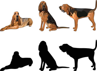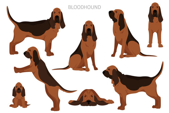 Bloodhound clipart. Different coat colors and poses set